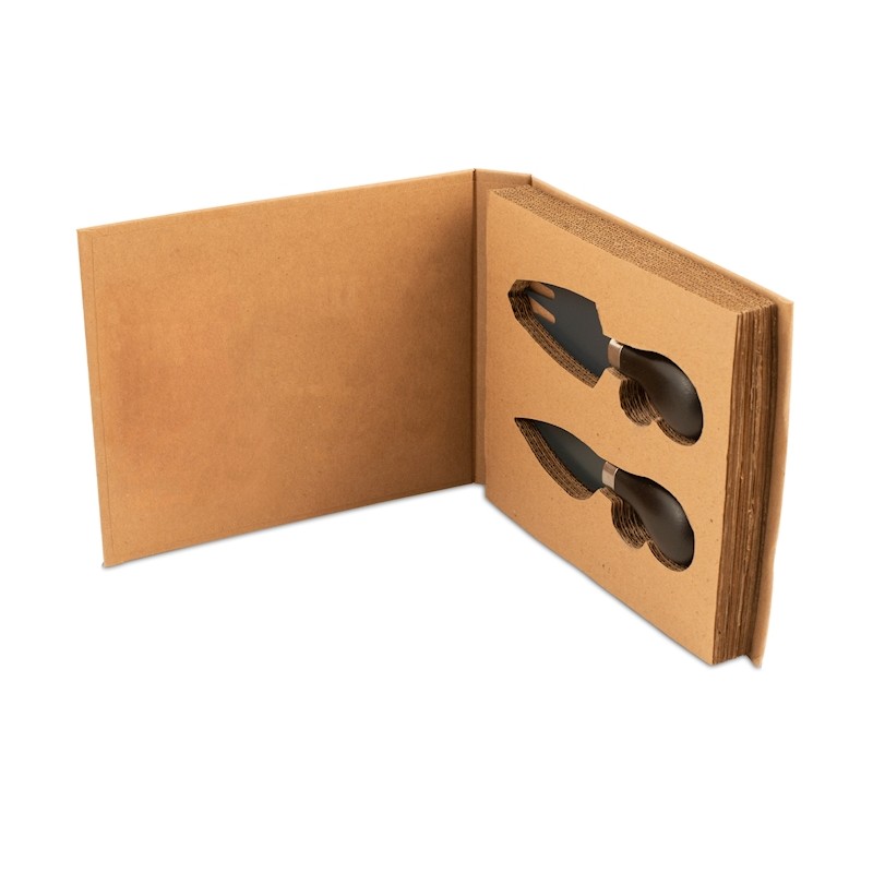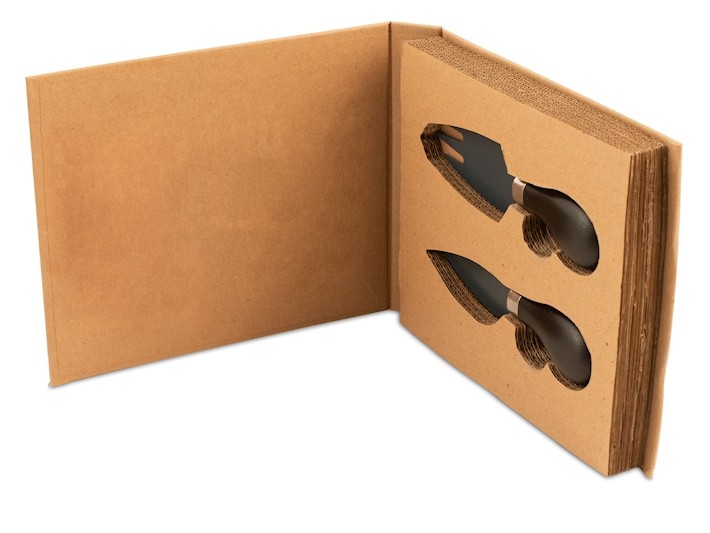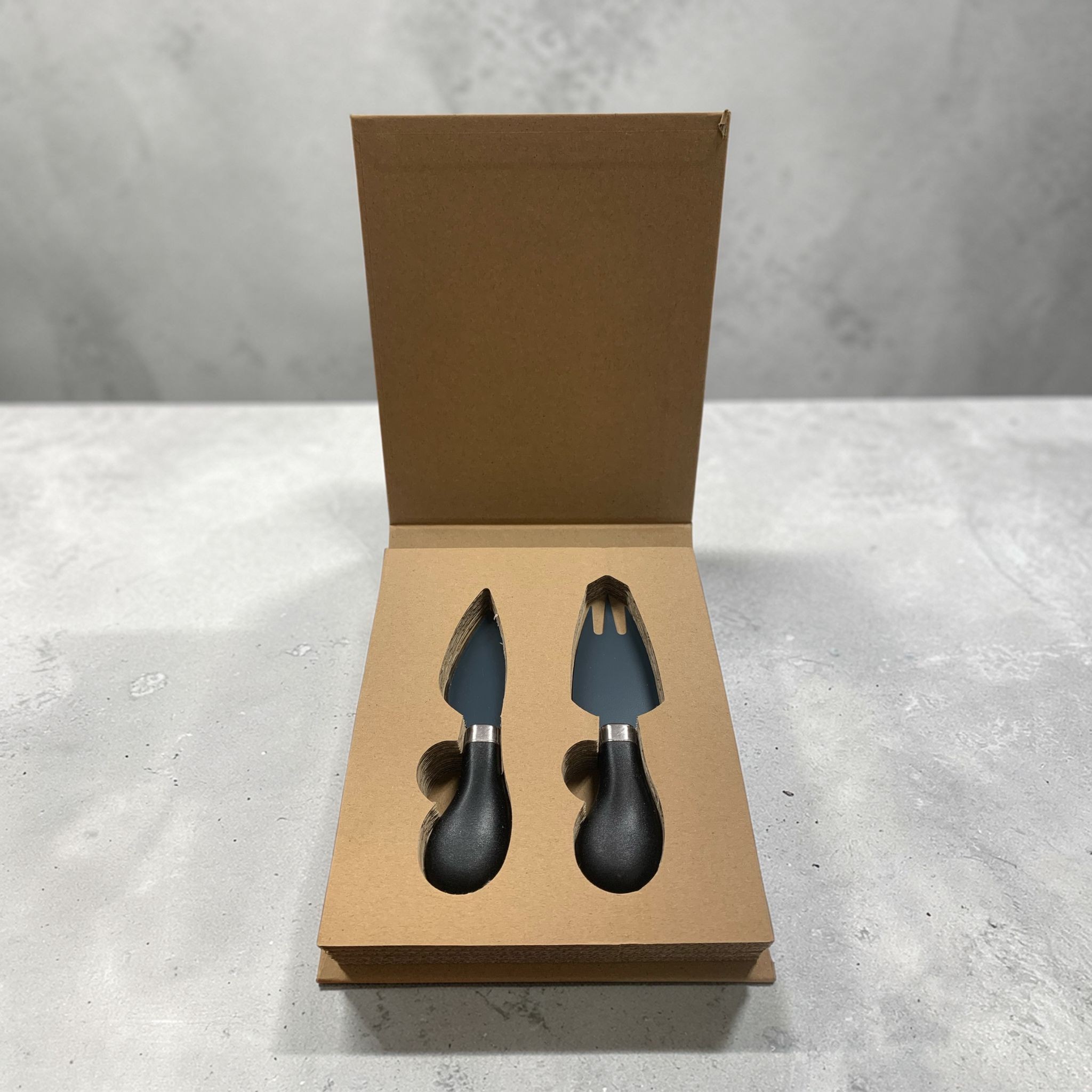 De acero inoxidable con mangos de polipropileno, presentados en caja de regalo.