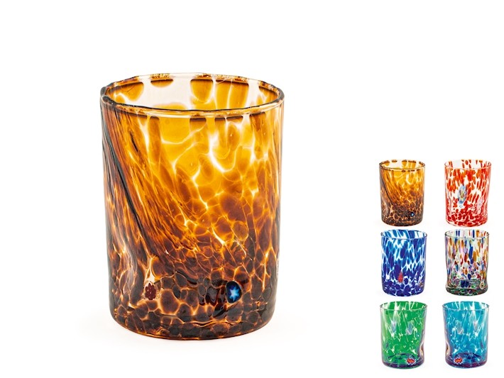 Conjunto de 6 vaso en vidrio veneciano con listas de 33CL