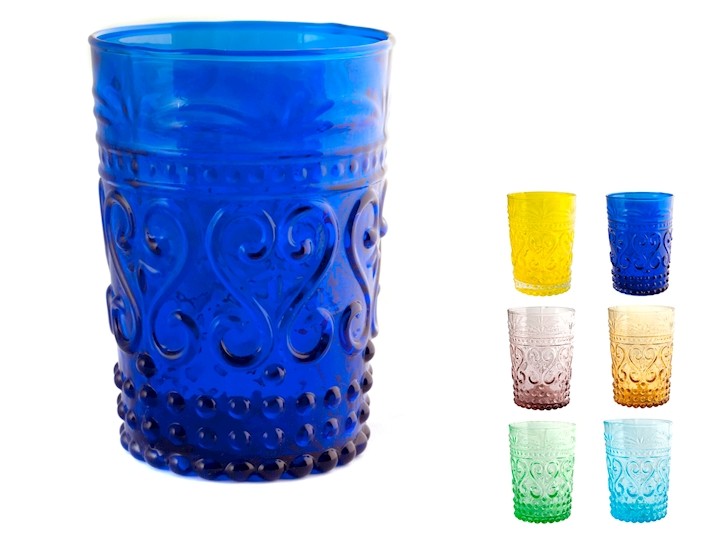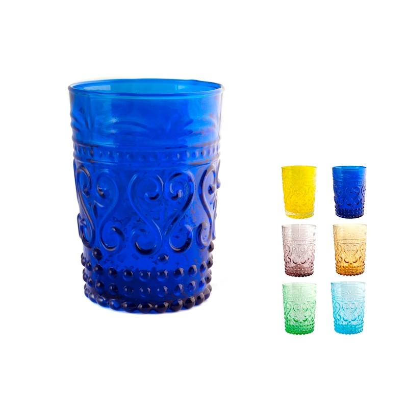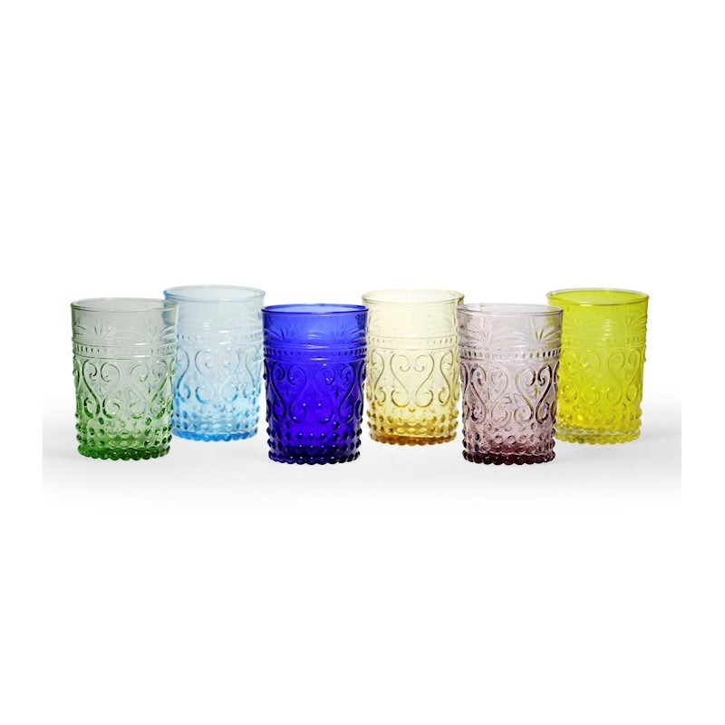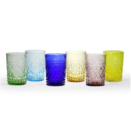 Juego de 6 vasos en vidrio colores combinados de 26CL