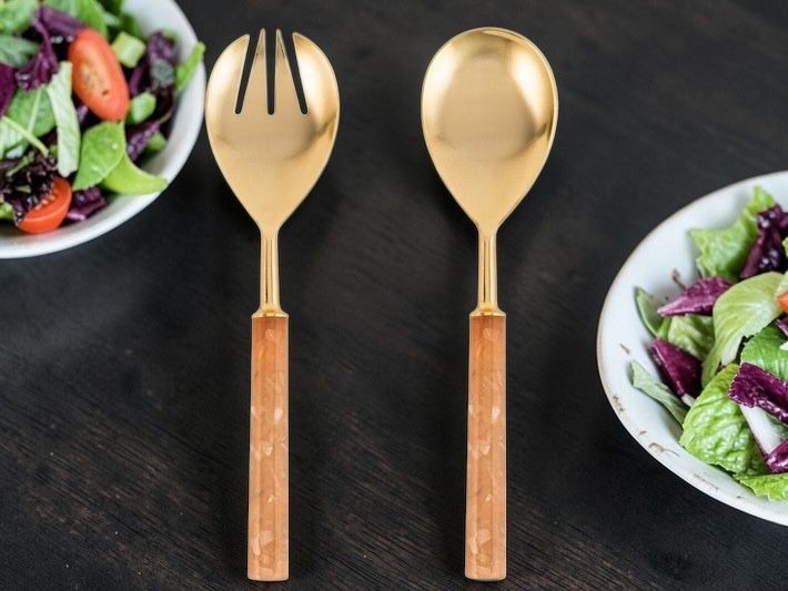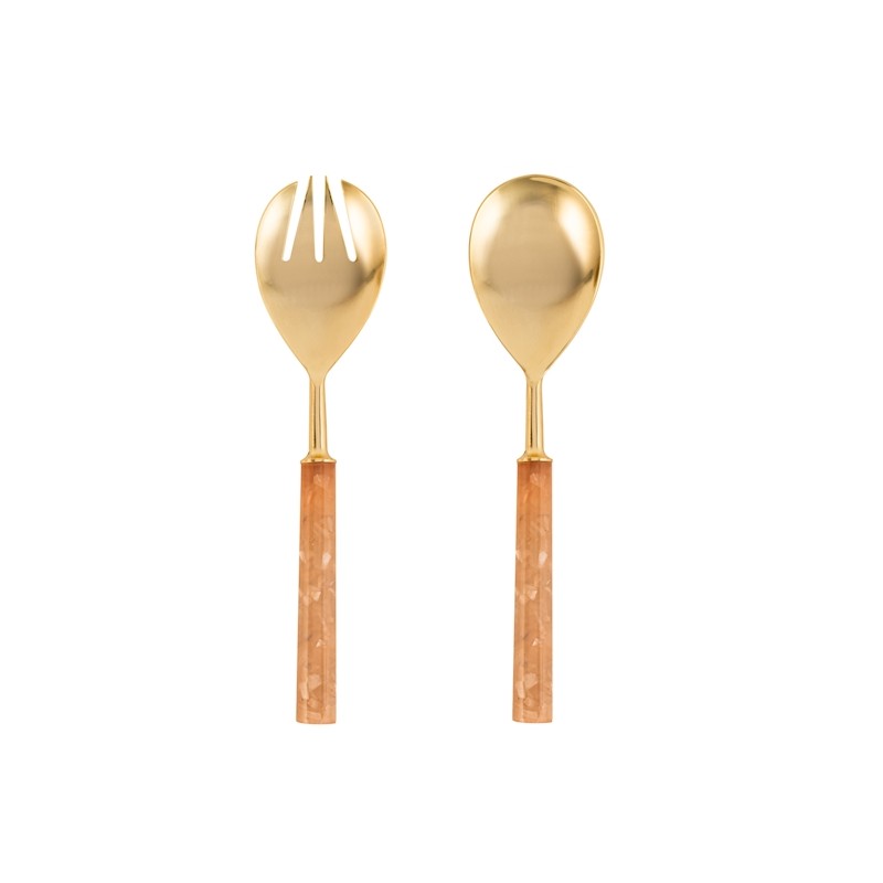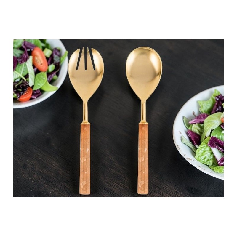 Juego de 2 cubiertos para ensalada de acero inoxidable 18/8 con mangos de resina.
