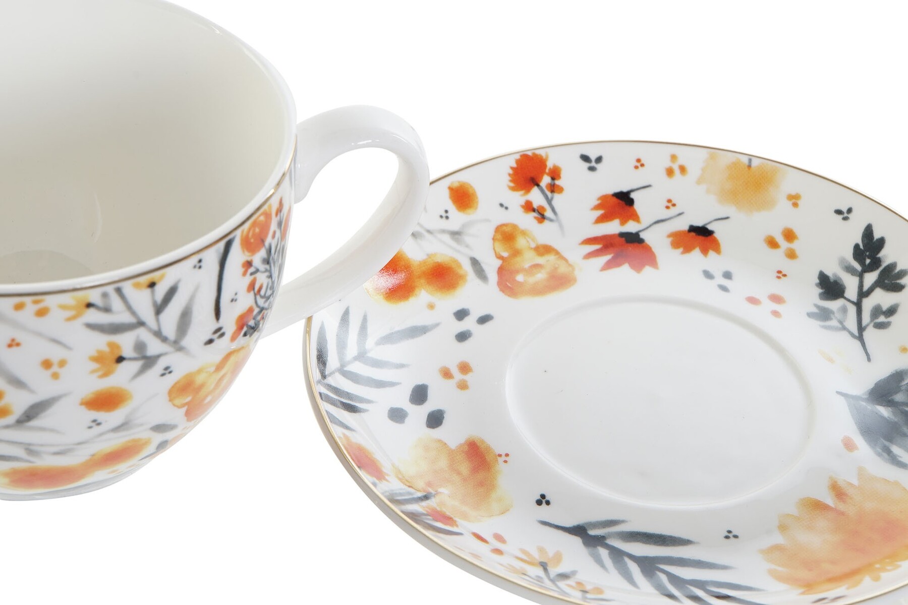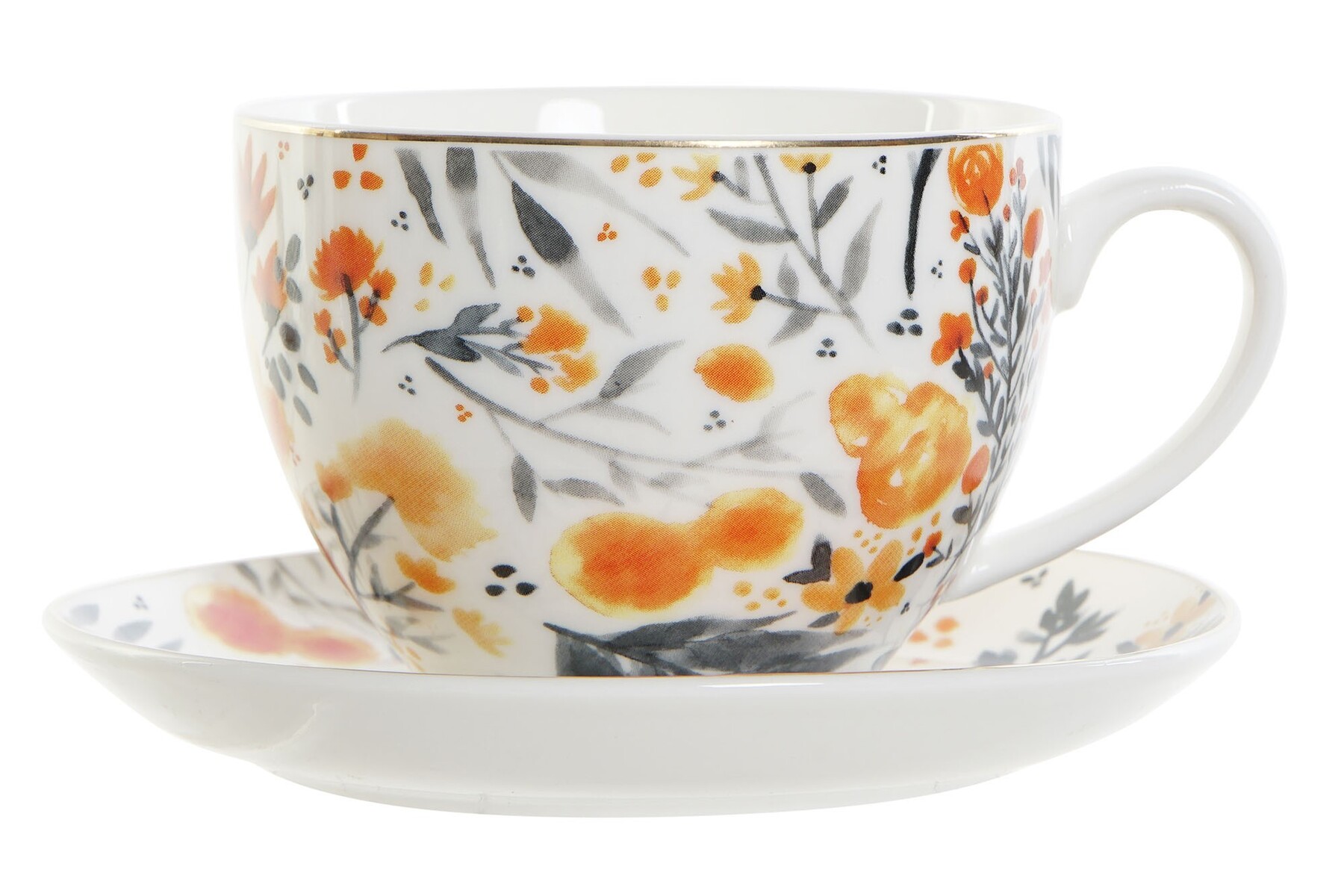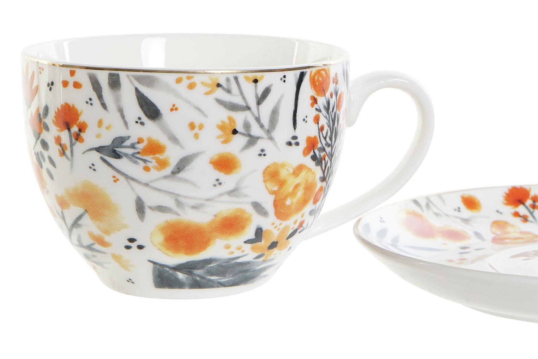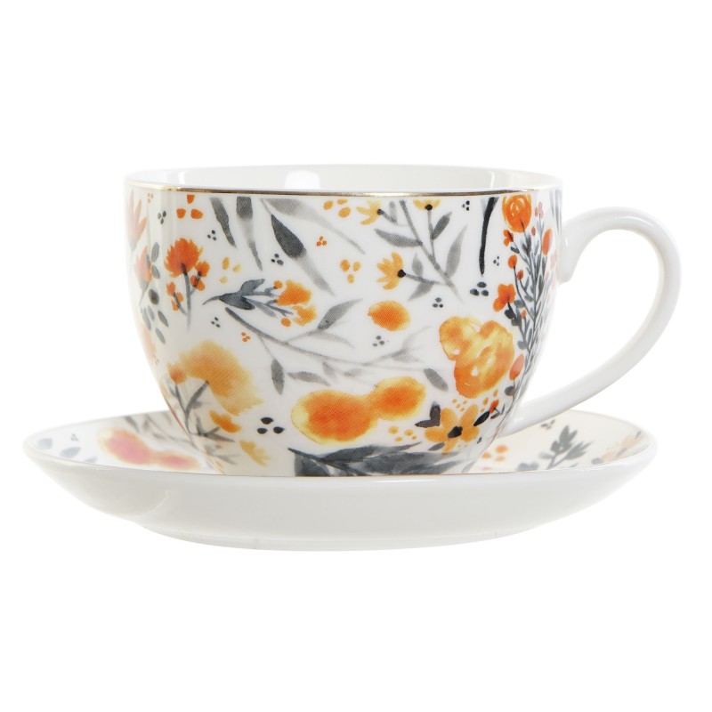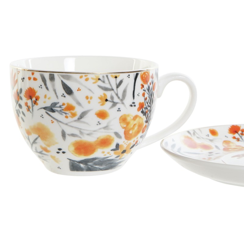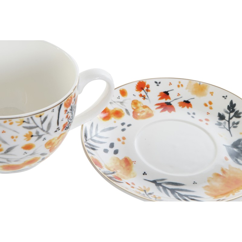 SET TAZA PLATO PORCELANA FLORES