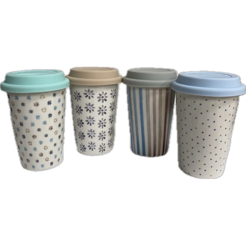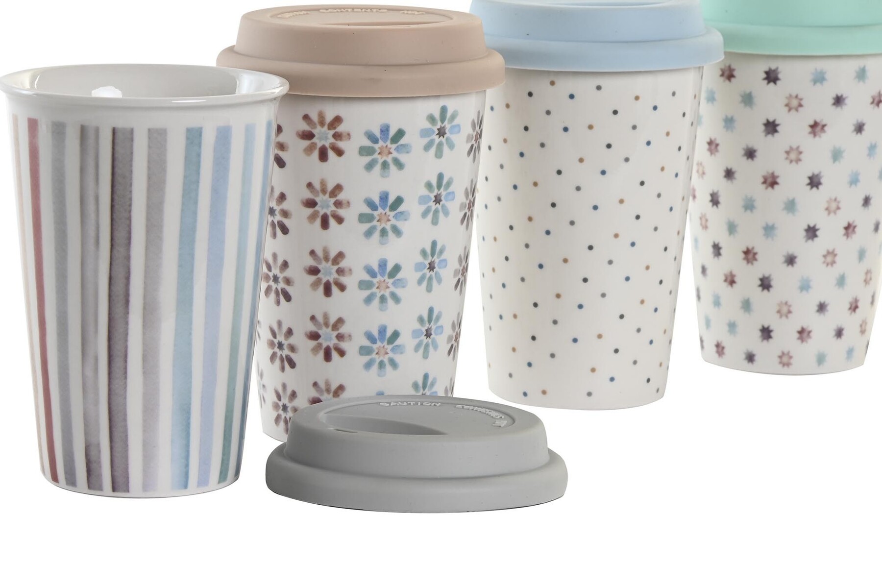 Mug de porcelana con tapa de silicona 14x9x5CM de 500ML