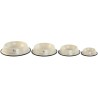 Color beige. En metal de fácil limpieza con goma antideslizante.