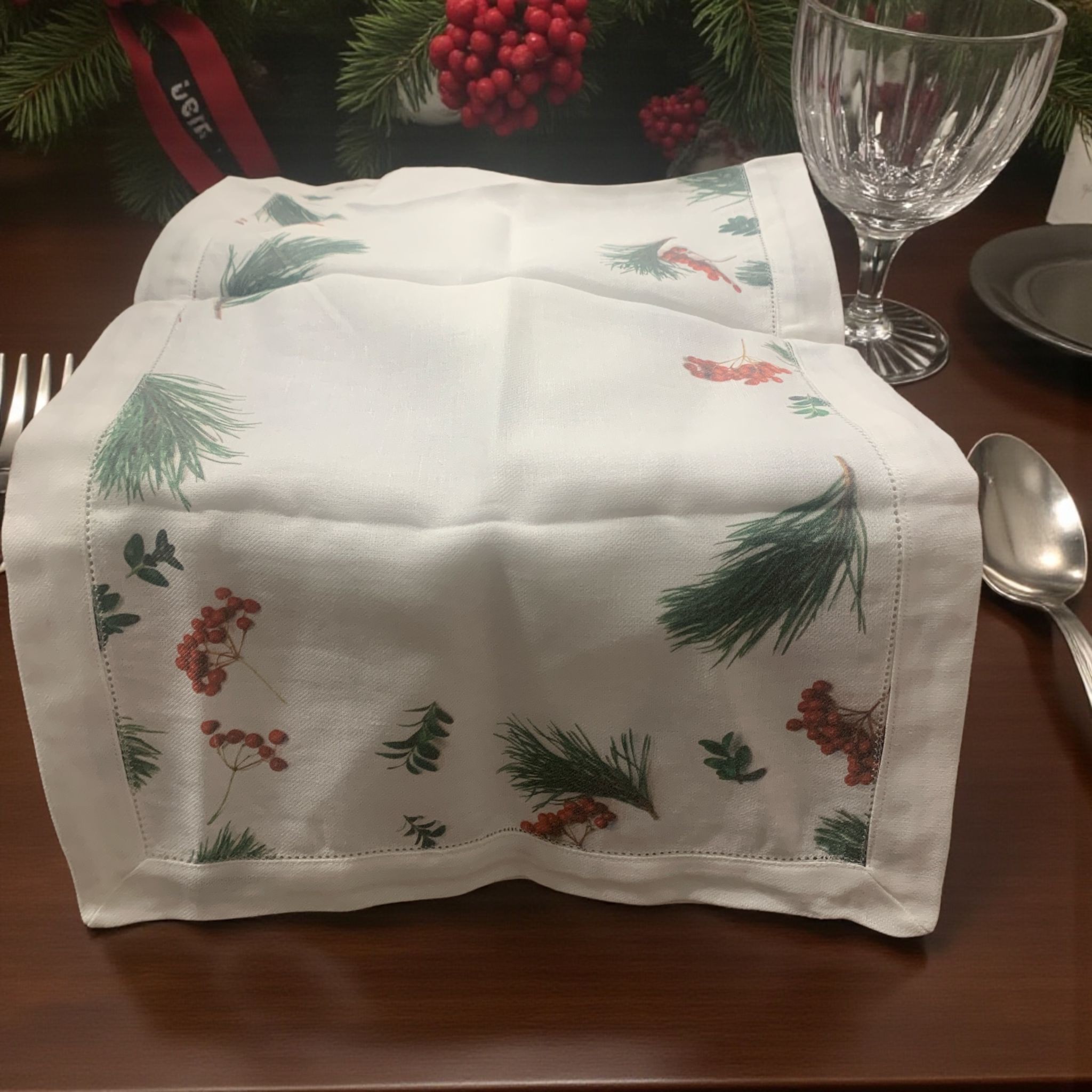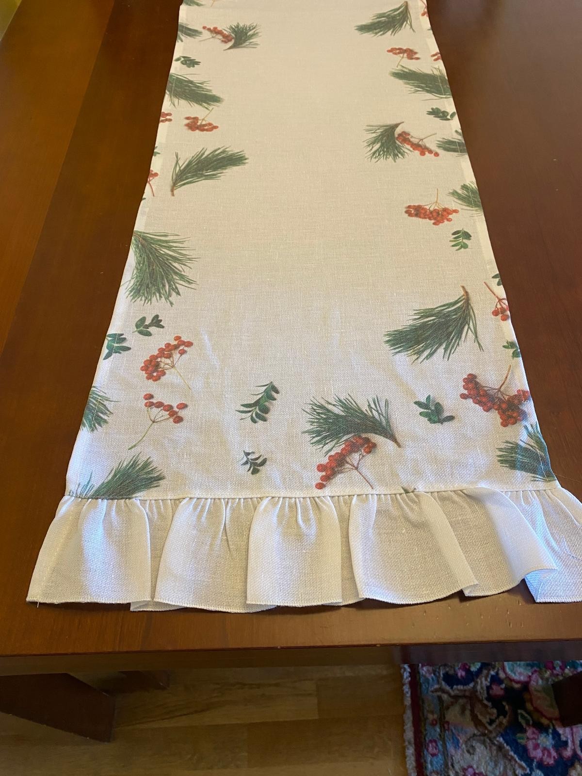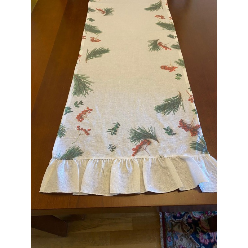 Set de camino de mesa con vainica 150x40 con estampado navideño