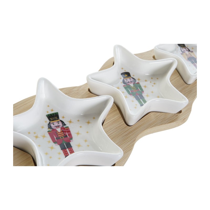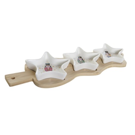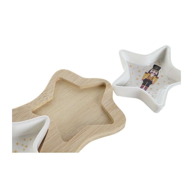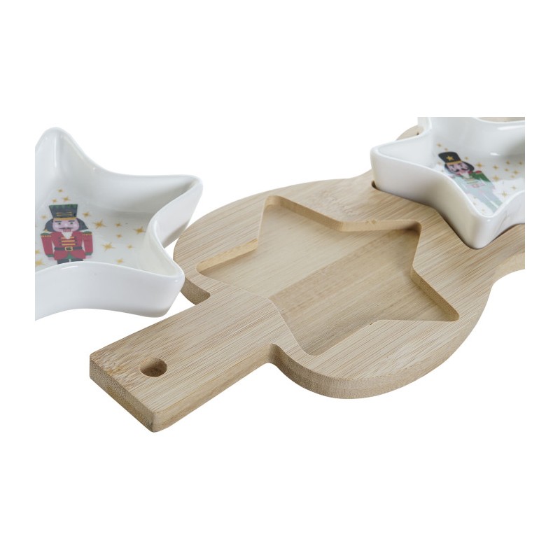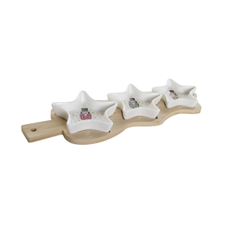 Tabla de aperitivos con tres cuencos en forma de estrella en gres y tabla en madera de bambú de 25,5X12CM