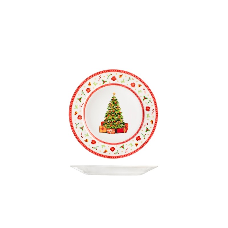 "Celebra la magia de la Navidad con estos platos de postre en porcelana" Sumérgete en el espíritu navideño con cada comida. Diseños exclusivos con motivos navideños que harán de tus reuniones familiares un momento inolvidable. ¡Calidad y estilo para una mesa llena de encanto!