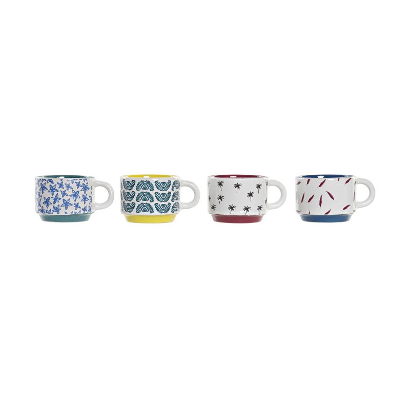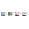 Juego de 6 tazas de café de gres con diferentes decorados y con soporte de metal