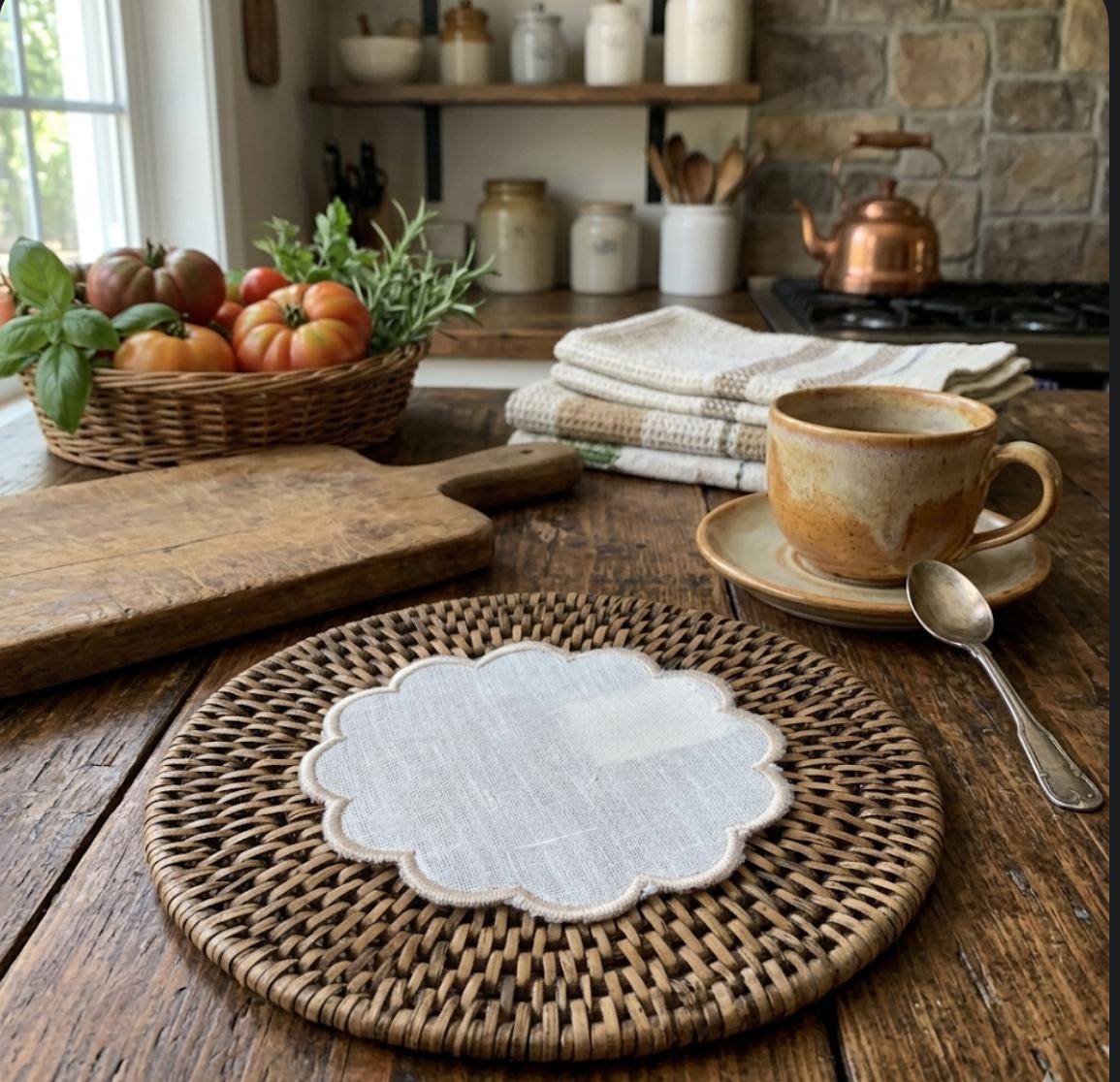 Elegancia atemporal, de alta calidad, nuestros pañitos para el pan son también una regalo perfecto y especial.