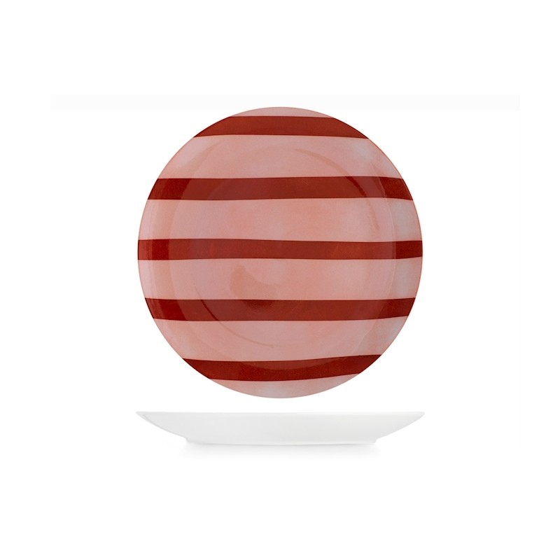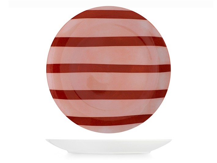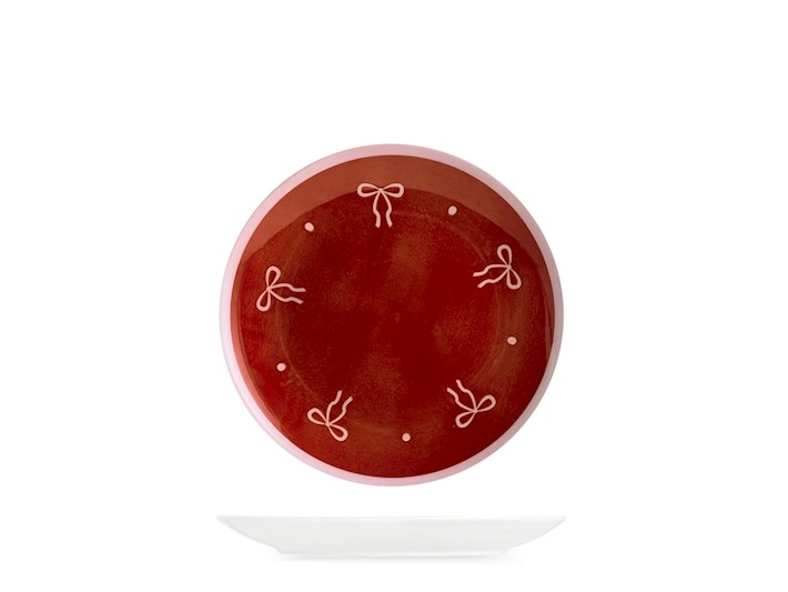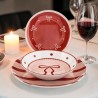Vajilla de 18 piezas en porcelana decorada en tonos granate rojizo